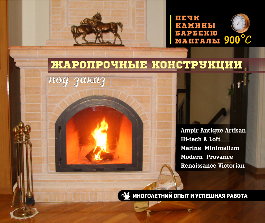 Арочные и прямоугольные двери с жаропрочным стеклом. На выбор 1 или 2 створки, без перемычки посередине, с вытяжным шибером, зольным зольным ящиком, встроенным в раму поддувом. Изготовление любых размеров, на заказ.
